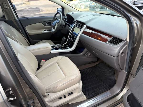 Discover the perfect blend of style, performance, and technology with this 2013 Ford Edge Limited. Dressed in a sleek Ingot Silver Metallic exterior, this SUV exudes sophistication while promising reliability on every journey. Under the hood lies a robust 6-cylinder engine delivering an impressive 285 horsepower and 253 ft-lbs of torque, ensuring you have all the power needed for both city commutes and weekend adventures. With its advanced All-Wheel Drive system, you're equipped to tackle any road condition with confidence. Step inside to experience luxury at your fingertips. The cabin is adorned with premium leather seating that offers comfort for every passenger. Stay connected effortlessly through Bluetooth connectivity and let the integrated Navigation System guide you seamlessly to your destination. This Ford Edge Limited is not just about getting from point A to B; it's about enjoying every mile along the way. Don't miss out on owning this exceptional vehicle—visit us today for a test drive!