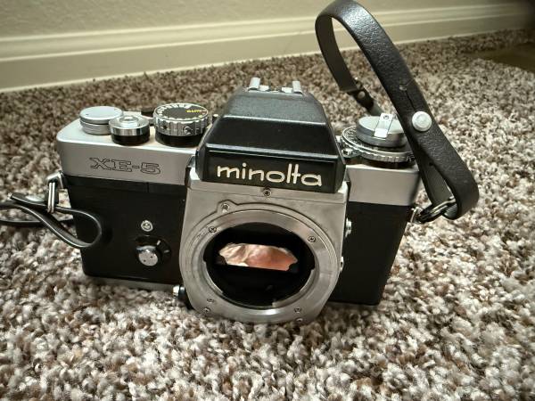 Minolta XE-5 Camera (with carrying strap) Good condition and includes two lenses. A Rokkor-X 50mm f.1.7 lens and a Vivitar 58-300mm 1:5.6 Auto Telephoto Lens $50 OBO