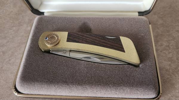 Beautiful presentation knife with the Shell Oil "Quality & Excellence" logo. With the blade out, the knife is 6" long. Gerber model 97223 Made in Portland, OR Located Harmony / Lemay area.