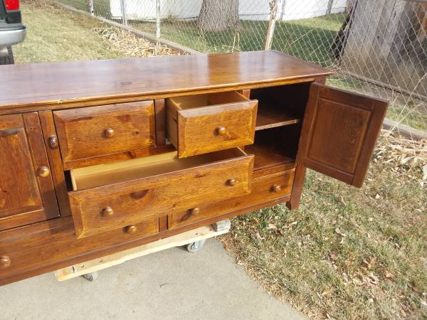 American of Martinsville Brand . It's 66 wide 20 deep 33 tall . Has five drawers all fully functional. Two cabinets one on each end. Does have scratches and such. Also can discuss delivery to your...