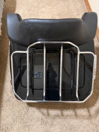 H-D Factory Rear Trunk with 2009 and newer quick release rack In very good condition metal flake black
