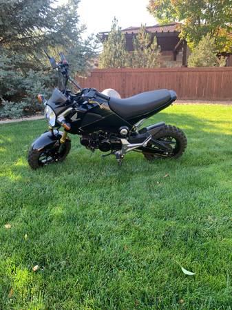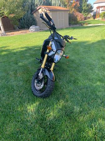 2014 Honda Grom. Great condition, everything works as it should. Super fun and nimble bike! Only 5426 miles (may go up slightly) I have both sets of keys for it and the owners manual. Has some very new tires and a yoshimura muffler so it sounds great. There are some scratches on the headlight(pictured) when the previous owner tipped it over but the headlight and turn signals still work as they should. Feel free to ask me any questions that you may have and come check it out!