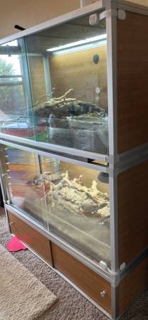 We have 4 ft x 2 ft Zen enclosures with reptiles included. One has glass doors and a bioactive enclosure + ball python. One has acrylic doors and arid bioactive enclosure + bearded dragon.