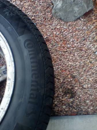 Set of 4 Continental studless snow tires mounted on Bobert 15x7 wheels, set of 4. Lots of tread. I used them on a BMW E28 and E34.